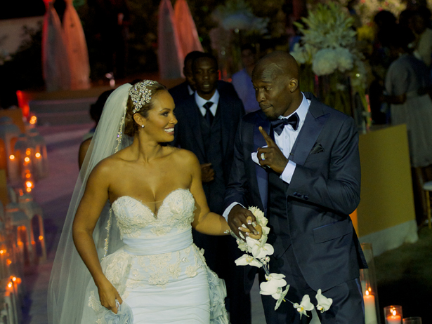 ST MAARTEN, NETHERLANDS ANTILLES – JULY 04: Chad Ochocinco and Evelyn Lozada marry at Le Chateau des Palmiers on July 4, 2012 in St. Maarten, Netherlands Antillies.